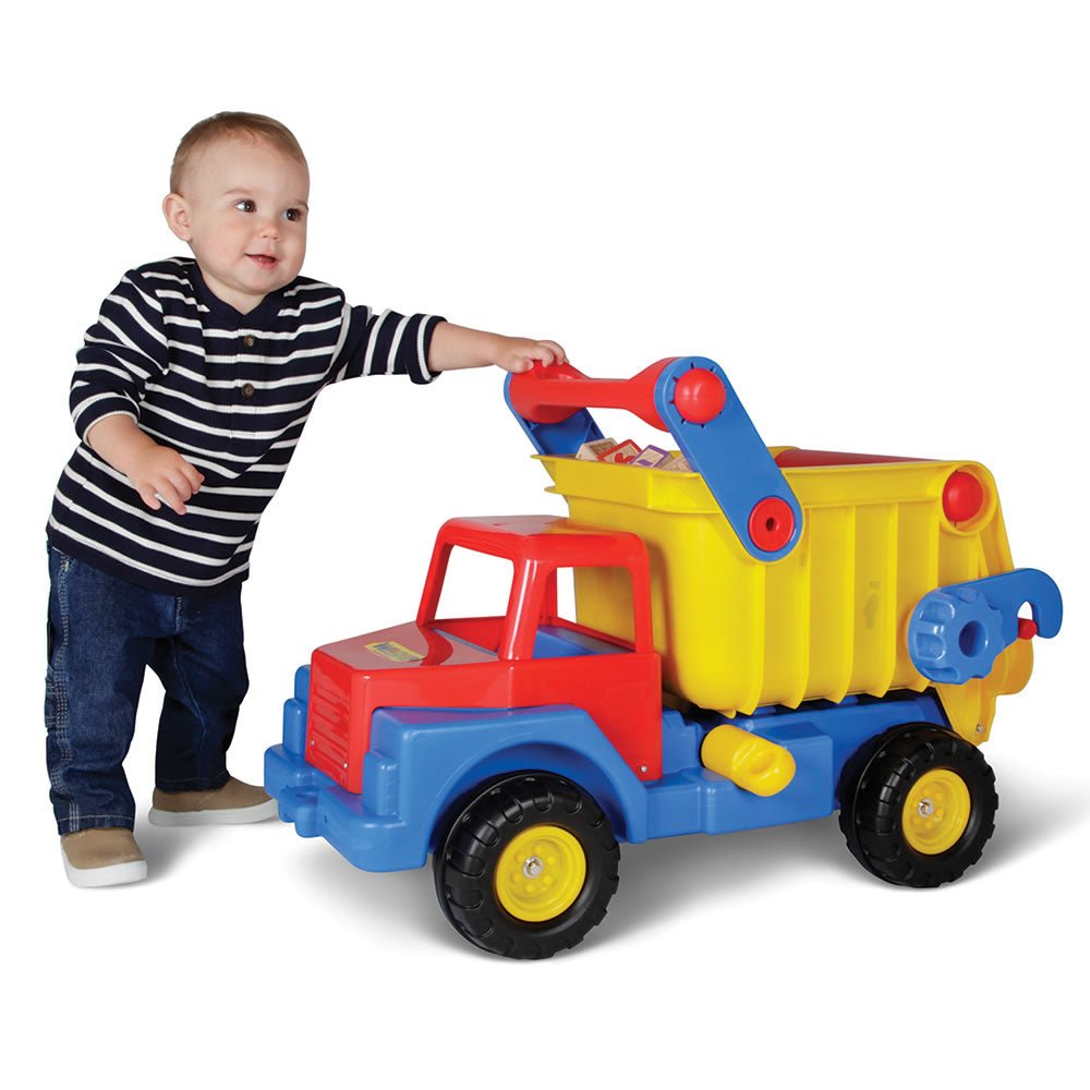 Watch as your child is captivated by the endless possibilities this dump truck offers, from imaginative play scenarios to the sheer delight of dumping toys with a simple push of the handle. Its oversized wheels and vibrant colors make it a standout toy, sparking joy and creativity every day.