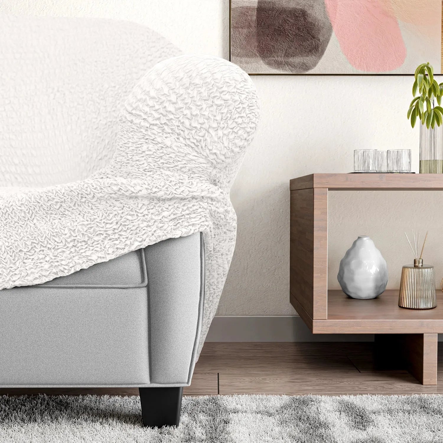 Enjoy peace of mind as our slipcover not only protects against stains and spills but also revitalizes your furniture with its plush texture. Its stretch fabric ensures a smooth finish, providing both beauty and practicality. Experience the comfort and confidence of a protected armchair, enhancing family bonding and pet-friendly environments.