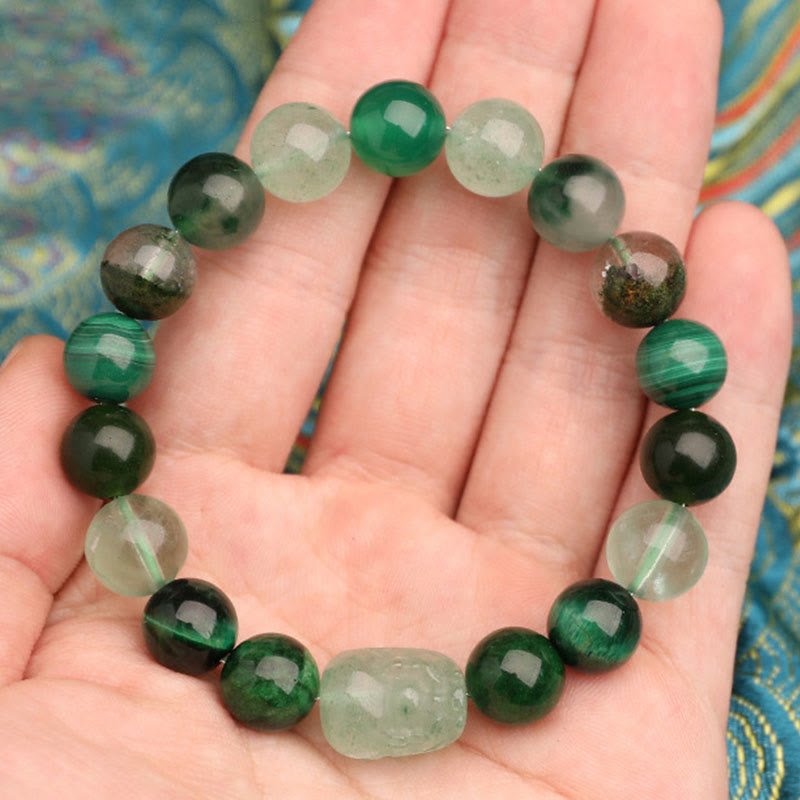 • Crafted with a variety of crystals and agates including Green Strawberry Quartz, Moss Agate, and Green Phantom.