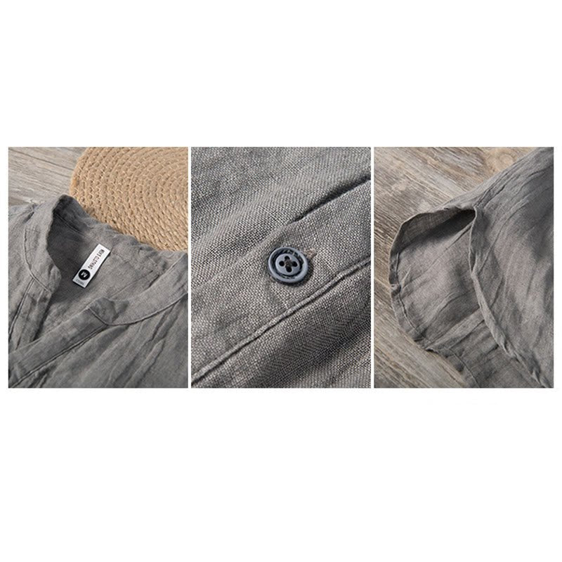 Men's Short Sleeve Cotton Linen Half Button Shirt