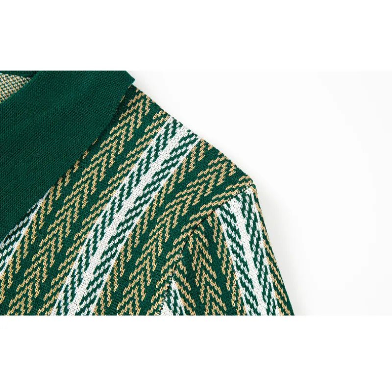 Men's Slim Fit Button Down Polo with Herringbone Pattern