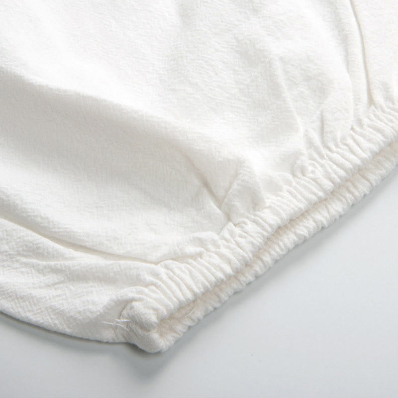 Men's Short Sleeve Cotton Linen Half Button Shirt